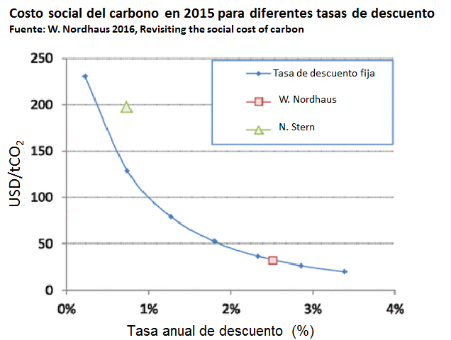 Si bien estos dos últimos temas han estado en el debate, el no considerar los efectos dañinos de manera global, es técnicamente incorrecto. De hecho, el profesor de Yale William Nordhaus, estima que el costo social del carbono en 2015 es de USD31 por tonelada de CO2 (en dólares de 2010).